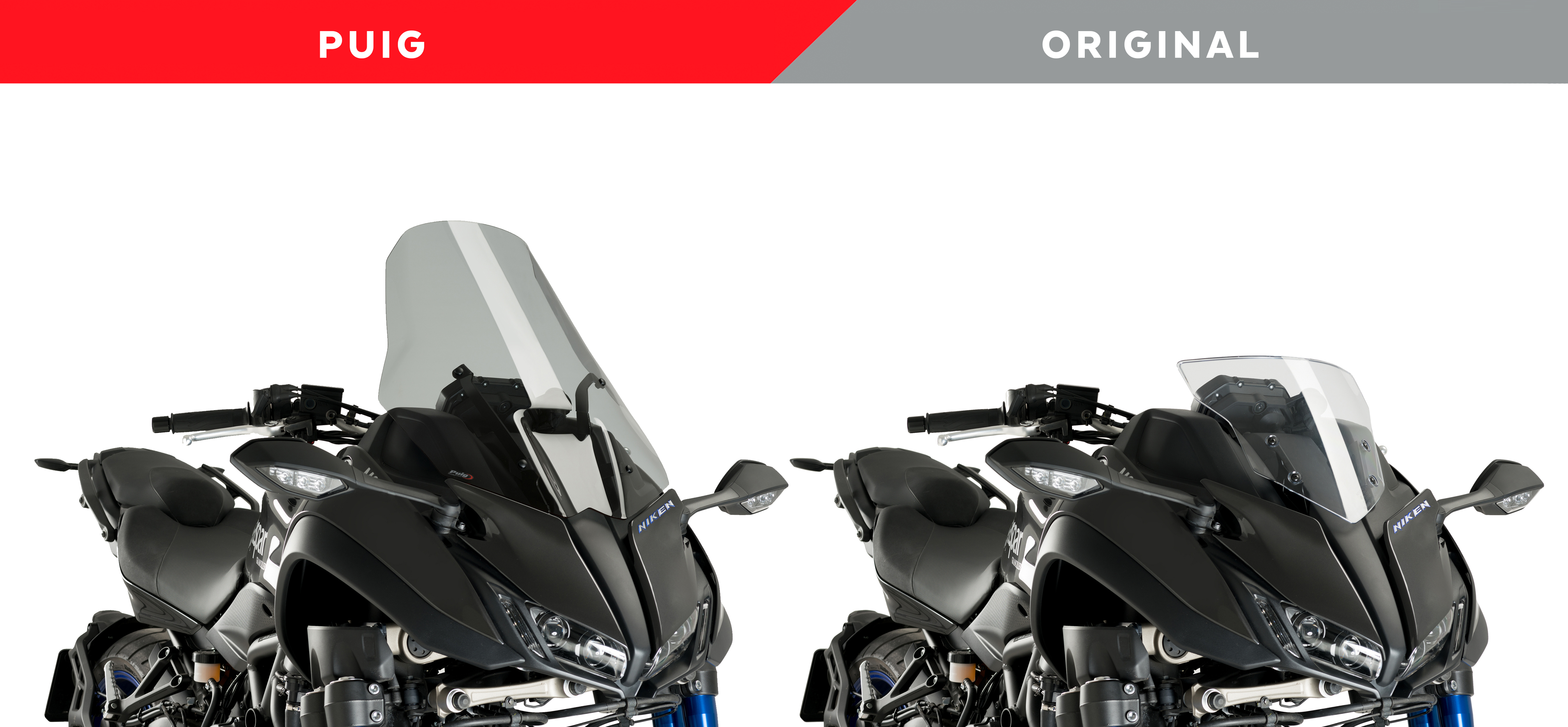 I cupolini Touring, sviluppati da Puig a Barcellona, sono progettati con l'obiettivo di proteggere aerodinamicamente il pilota senza influenzare la sua visione del campo. Inoltre, questi schermi si adattano perfettamente allo stile di avventura e all'estetica dei modelli da pista grazie alla loro vasta gamma di colori e dimensioni diverse.