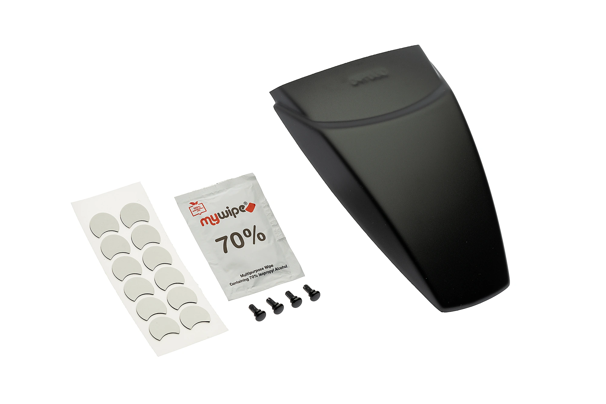 Da montare con i cuscinetti adesivi inclusi. Inoltre, i rivetti sono inclusi come opzione per una maggiore sicurezza.