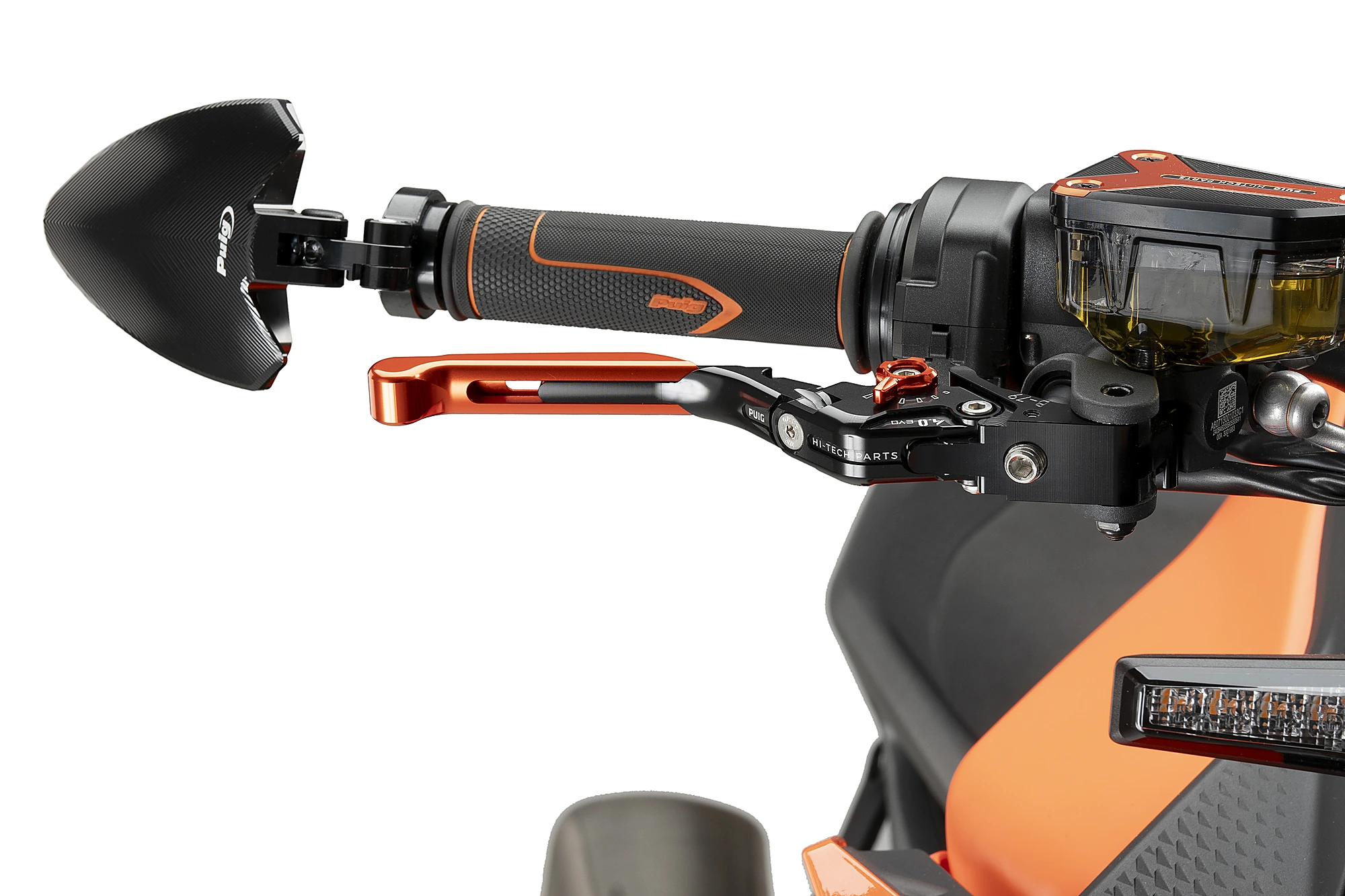 Specchietto montato lateralmente all'estremità del manubrio con meccanismo di fissaggio universale. Consultare la necessità di adattatori specifici a seconda del modello di moto.