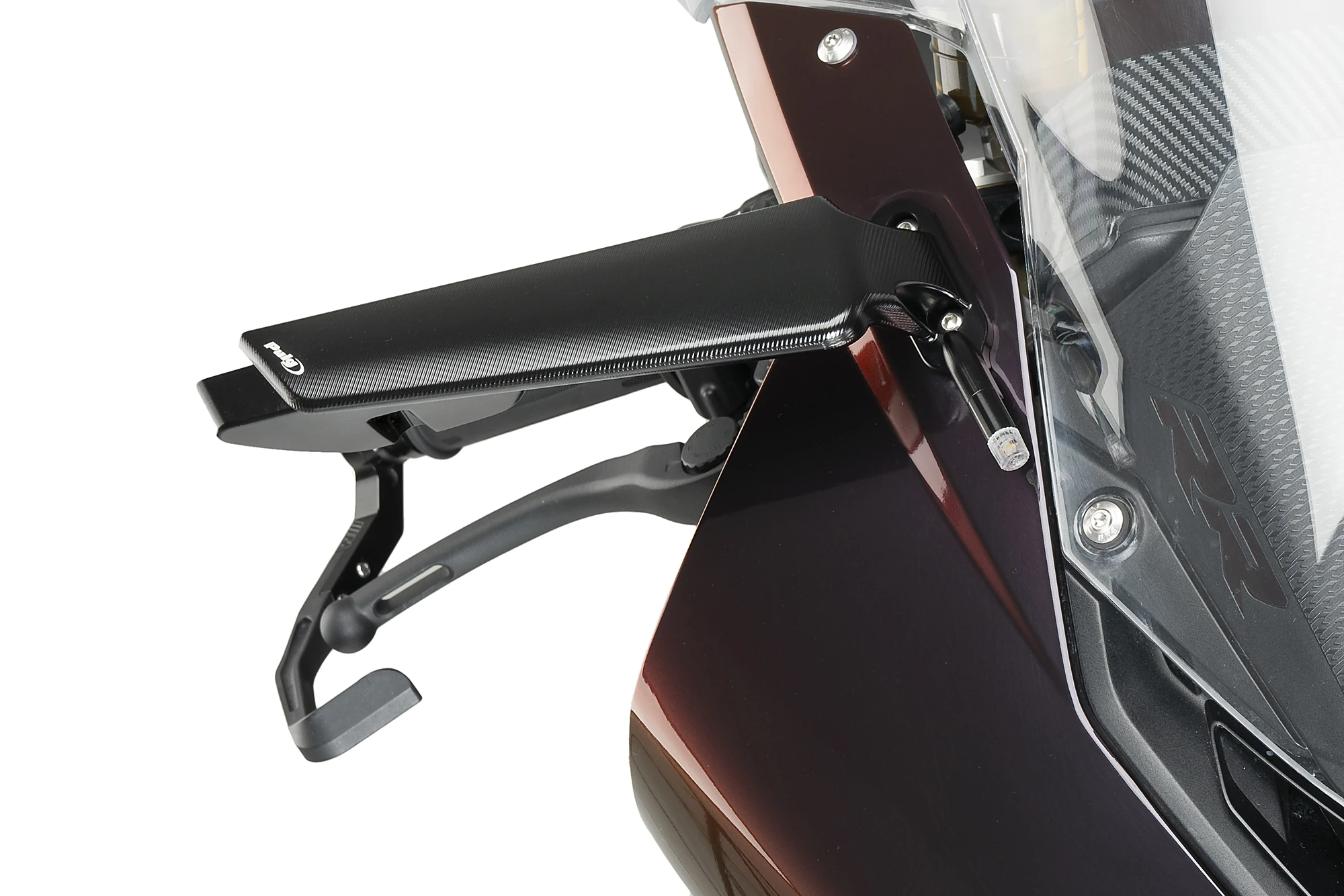Lo spoiler-specchio è stato sviluppato con la tecnologia della galleria del vento virtuale grazie alla vasta esperienza di Puig nelle migliori competizioni come il Campionato del mondo MotoGP e SBK, ispirandosi agli ultimi progressi nel campo dell'aerodinamica. È ricavato da un blocco di alluminio e presenta un'elegante anodizzazione nera per un'ottima finitura.