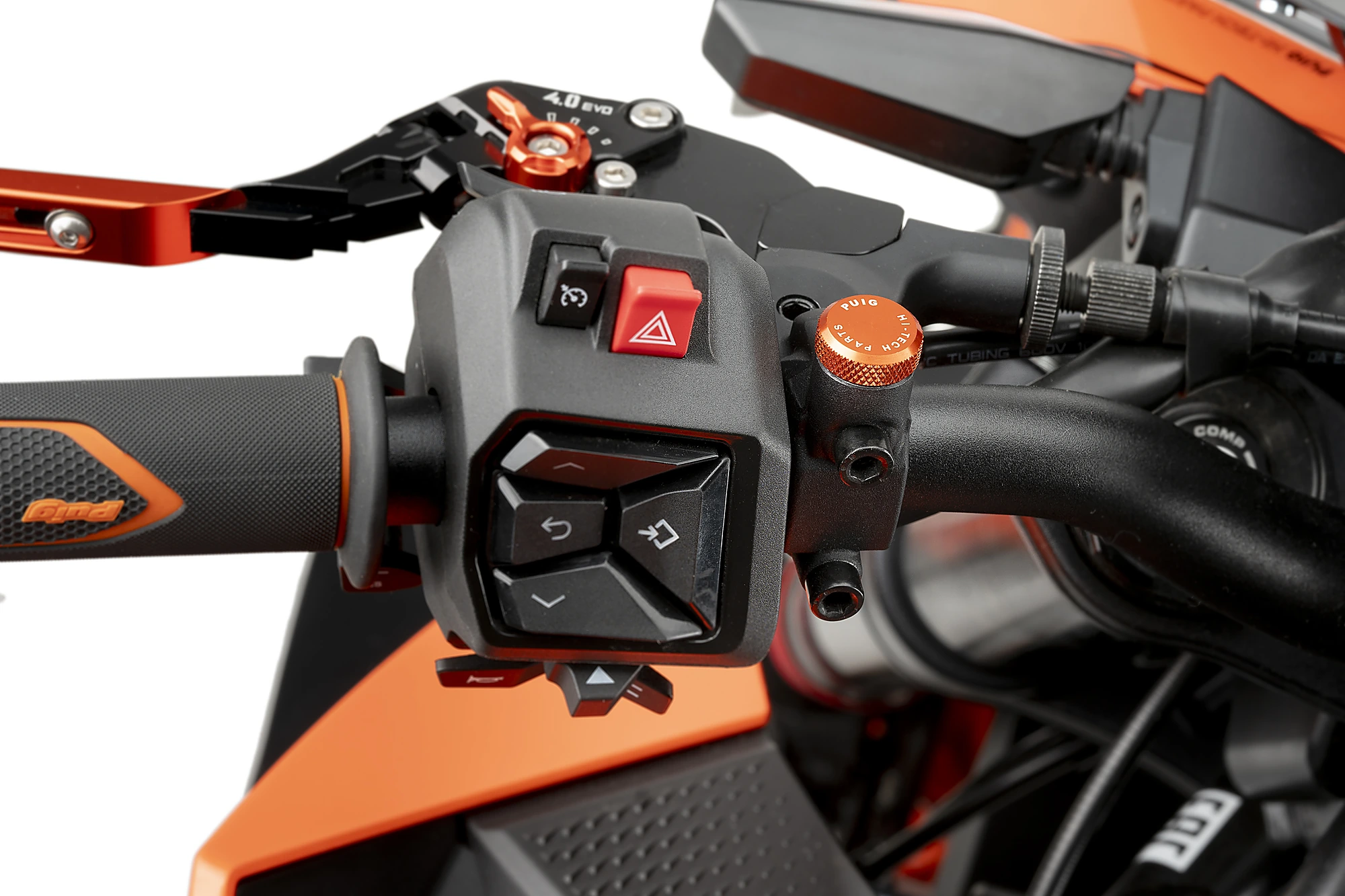 Sono realizzati in alluminio di alta qualità con successivo trattamento di anodizzazione e superficie zigrinata per ottenere una migliore finitura. Disponibili in diversi colori per scegliere quello che meglio si abbina alla tua moto, incorporano la scritta Puig Hi-Tech Parts all'esterno.