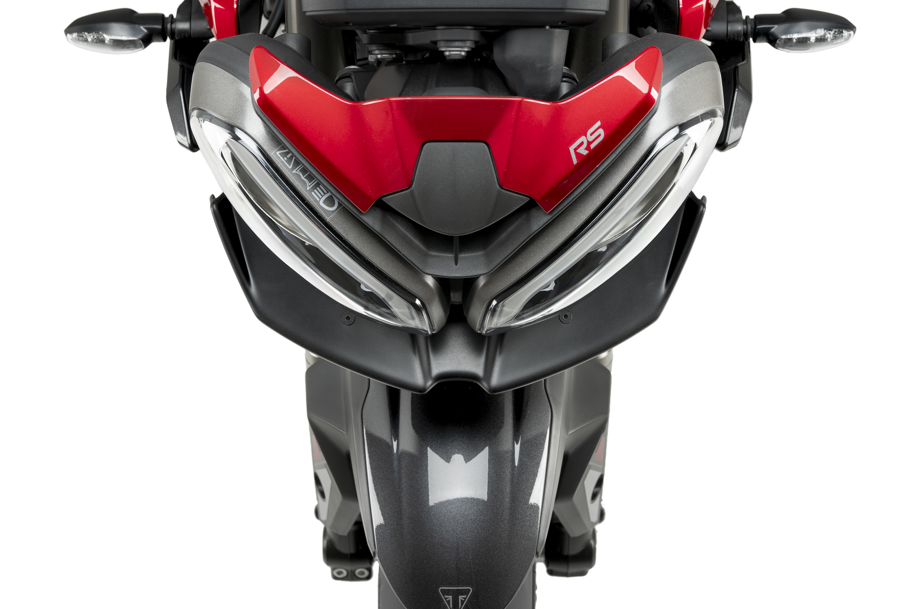 Progettato per integrarsi perfettamente sotto il doppio faro anteriore, presenta linee marcate e un canale centrale che canalizzano il flusso d’aria e accentuano il look sportivo della moto. Le superfici laterali allargano visivamente il frontale, conferendogli un aspetto più robusto e aggressivo.