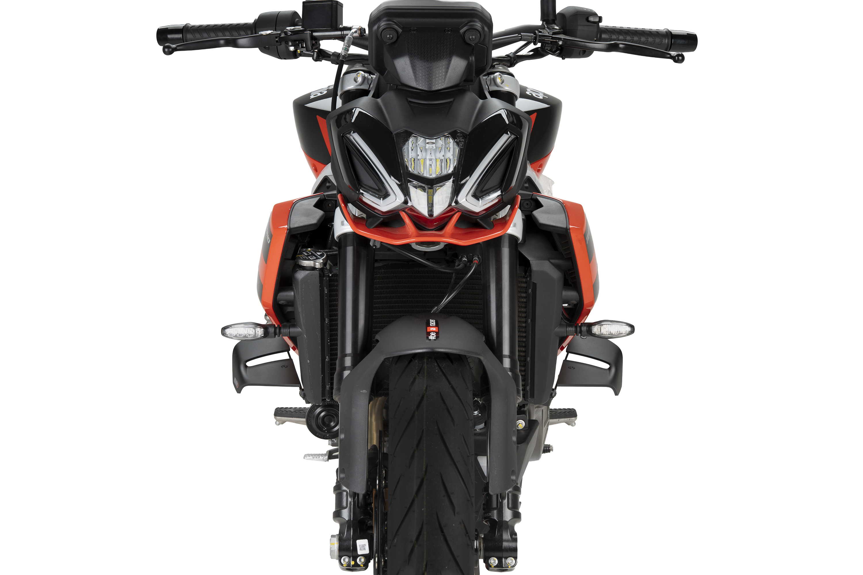 Grazie a questa configurazione si ottiene un carico aerodinamico fino a 4,4 kg sull’asse anteriore, con un effetto anti-wheelie, maggiore stabilità alle alte velocità (anti-shimmie), più efficacia in frenata e miglior controllo nei cambi di direzione.