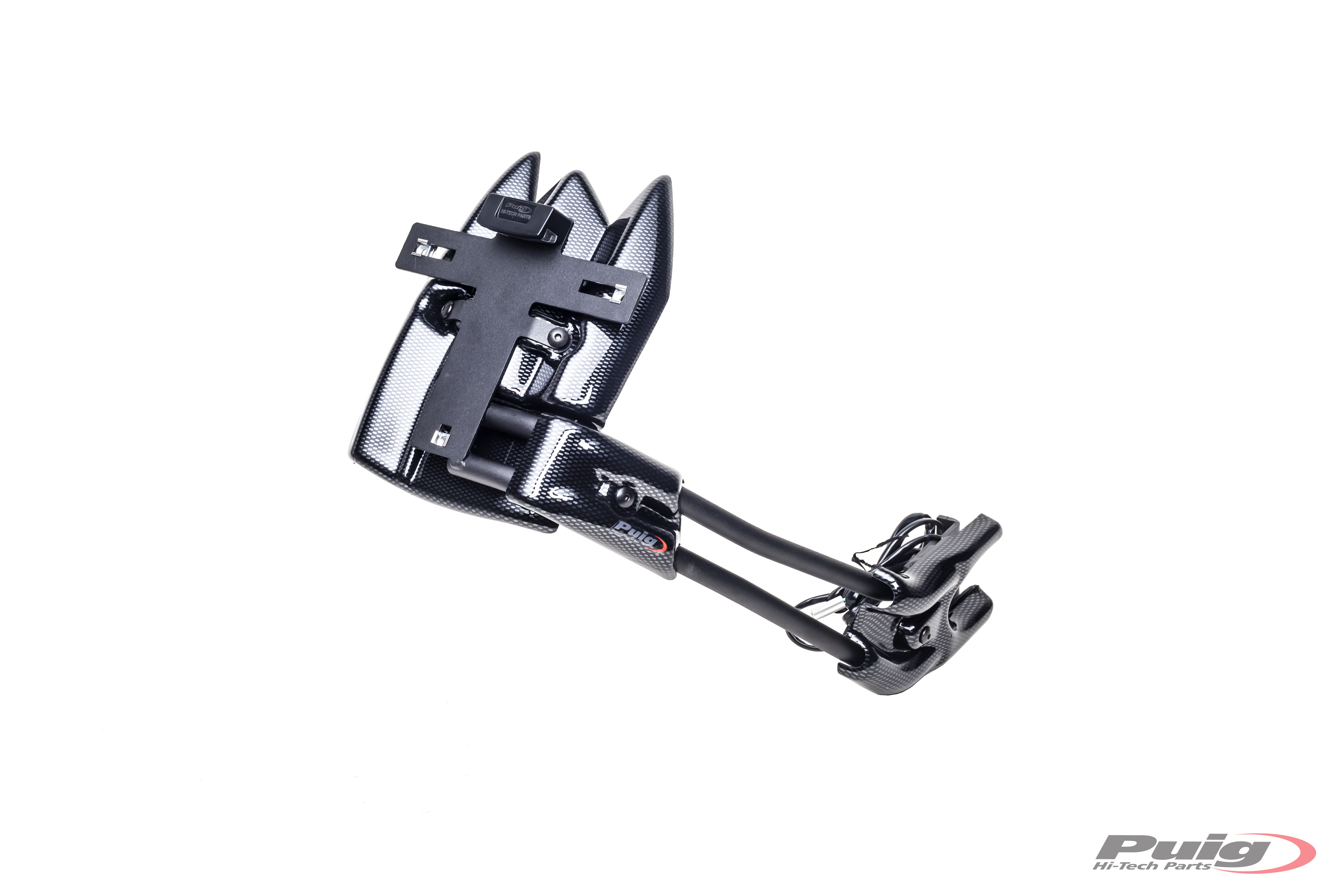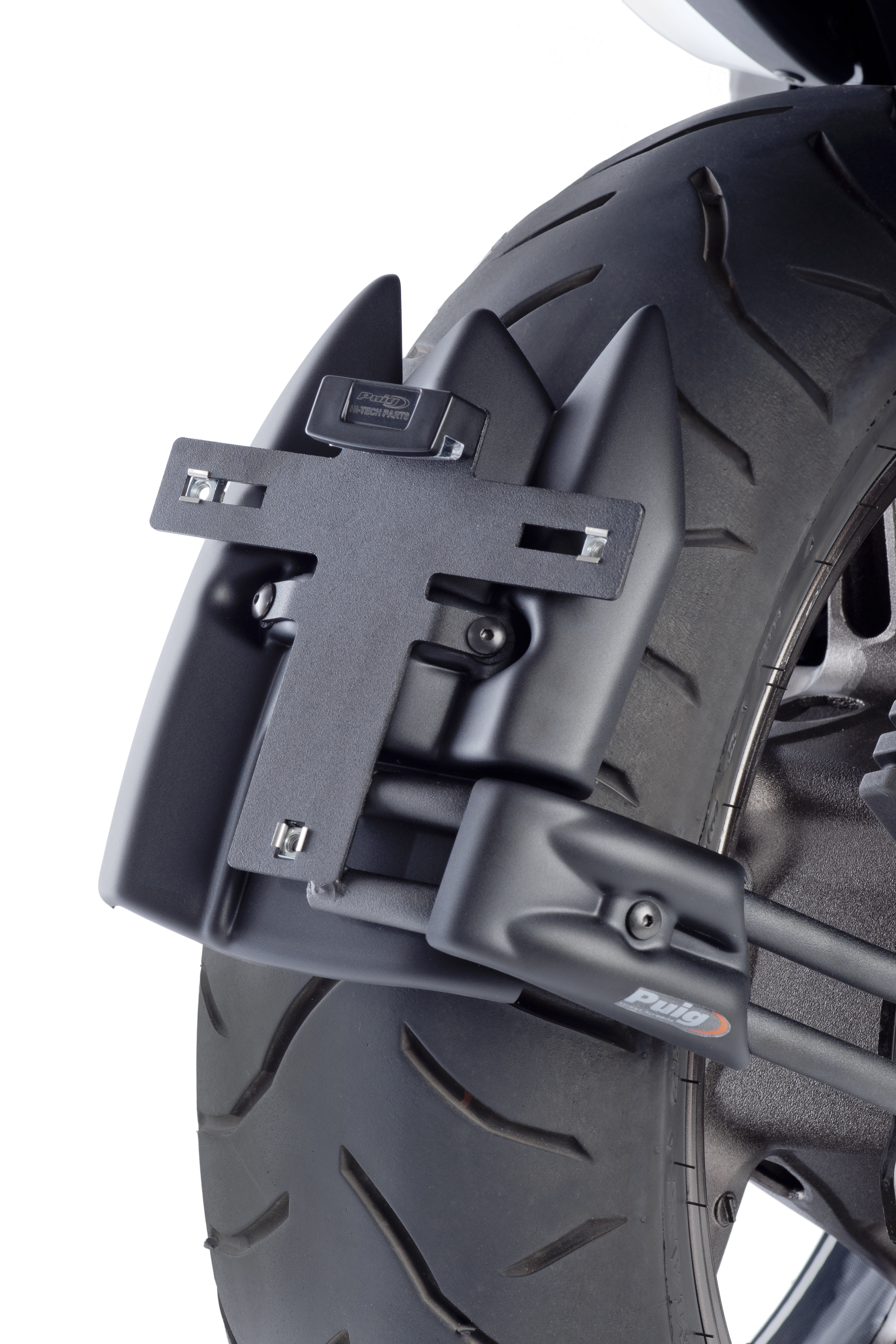 Sostituisci il portatarga originale della tua moto con il supporto portatarga Puig, che, grazie alla sua posizione elevata, dona un aspetto sportivo alla tua motocicletta. Il kit combina parti in acciaio con finitura verniciata in epossidica ed elementi in poliammide, garantendo una significativa riduzione di peso rispetto al supporto originale.