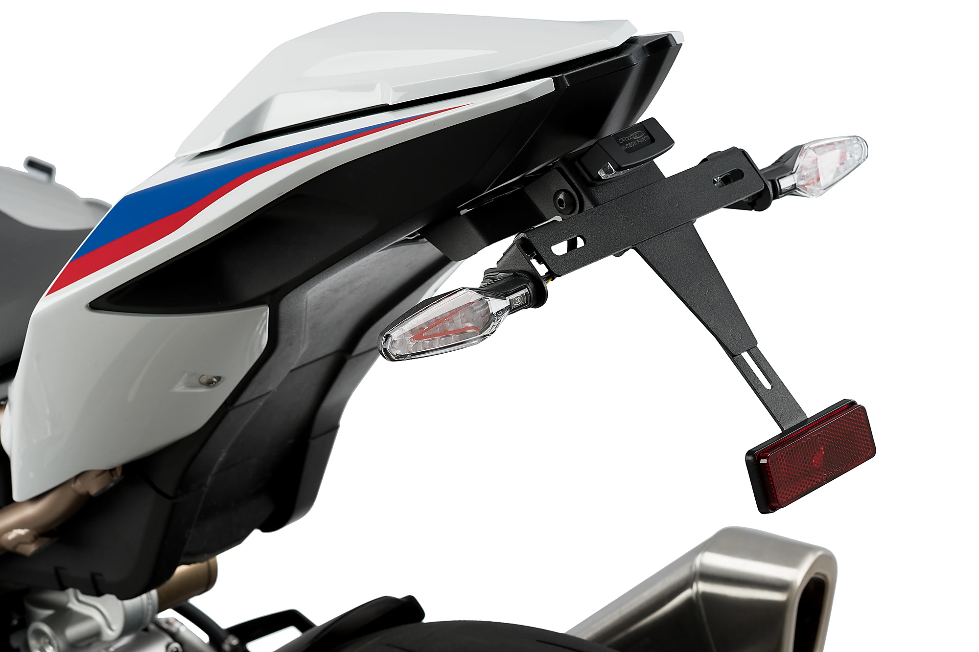 Sostituisci il portatarga originale della tua moto con il supporto portatarga Puig, che, grazie alla sua posizione elevata, dona un aspetto sportivo alla tua motocicletta. Il kit combina parti in acciaio con finitura verniciata in epossidica ed elementi in poliammide, garantendo una significativa riduzione di peso rispetto al supporto originale.