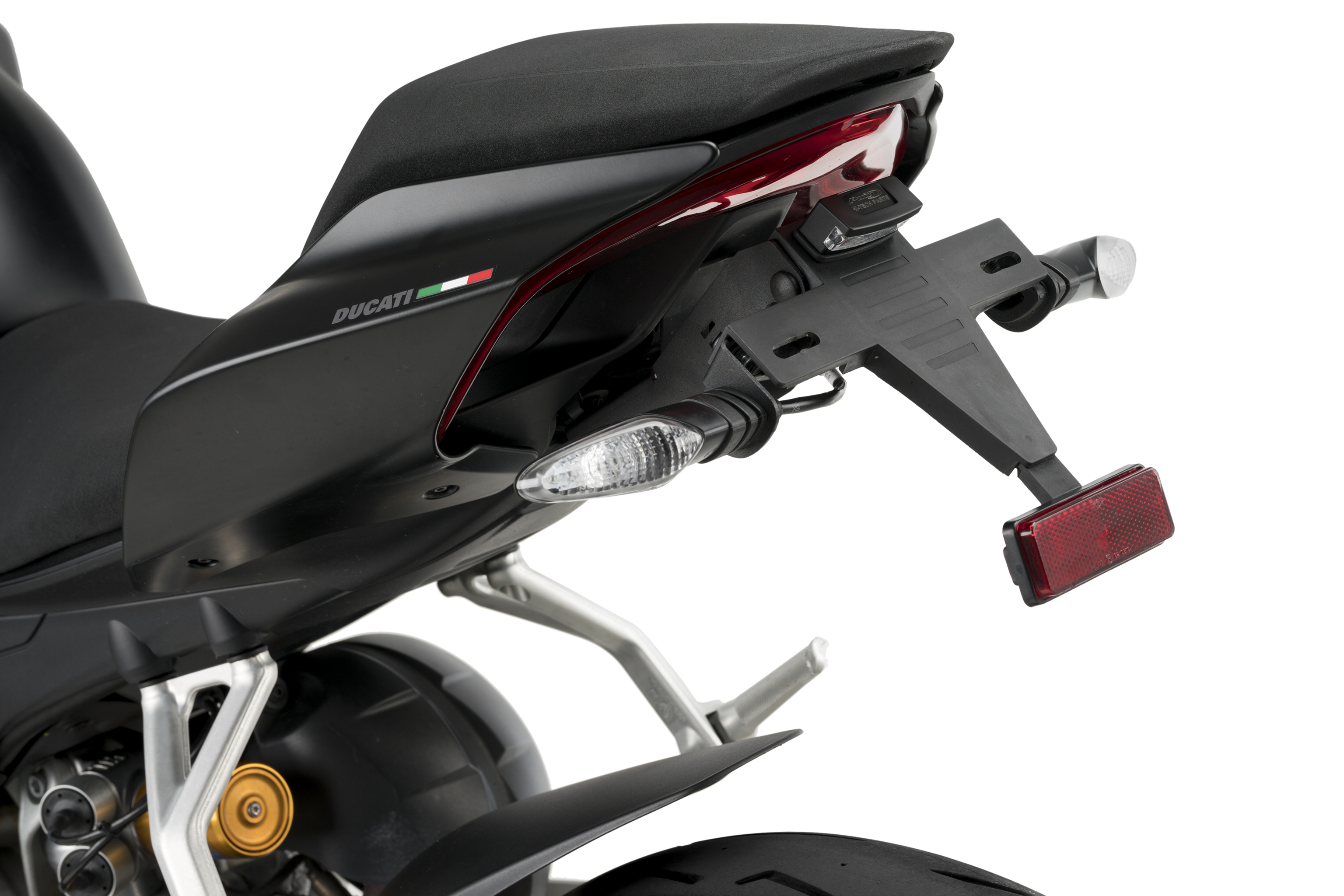 Sostituisci il portatarga originale della tua moto con il supporto portatarga Puig, che, grazie alla sua posizione elevata, dona un aspetto sportivo alla tua motocicletta. Il kit combina parti in acciaio con finitura verniciata in epossidica ed elementi in poliammide, garantendo una significativa riduzione di peso rispetto al supporto originale.