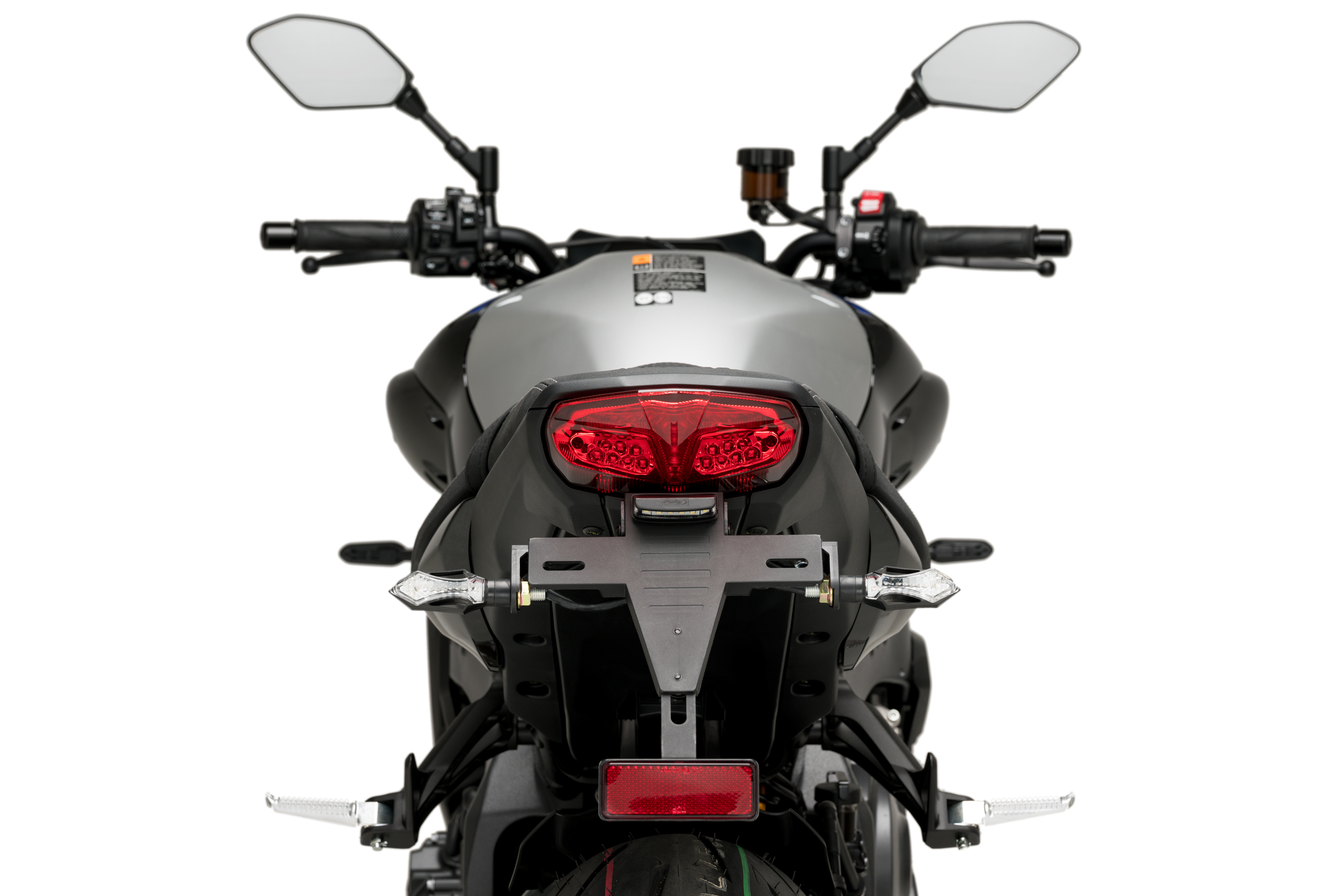 Sostituisci il portatarga originale della tua moto con il supporto portatarga Puig, che, grazie alla sua posizione elevata, dona un aspetto sportivo alla tua motocicletta. Il kit combina parti in acciaio con finitura verniciata in epossidica ed elementi in poliammide, garantendo una significativa riduzione di peso rispetto al supporto originale.
