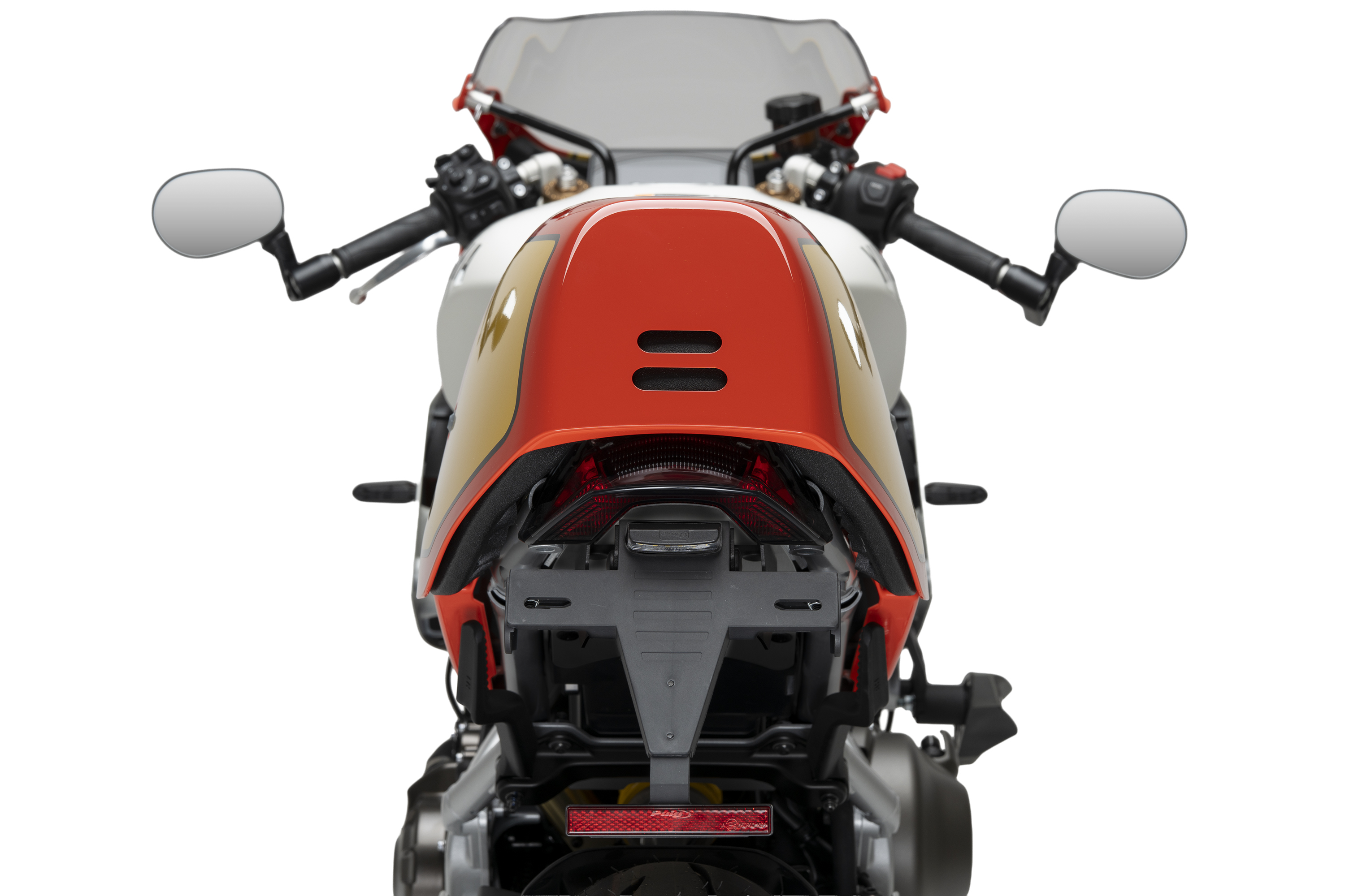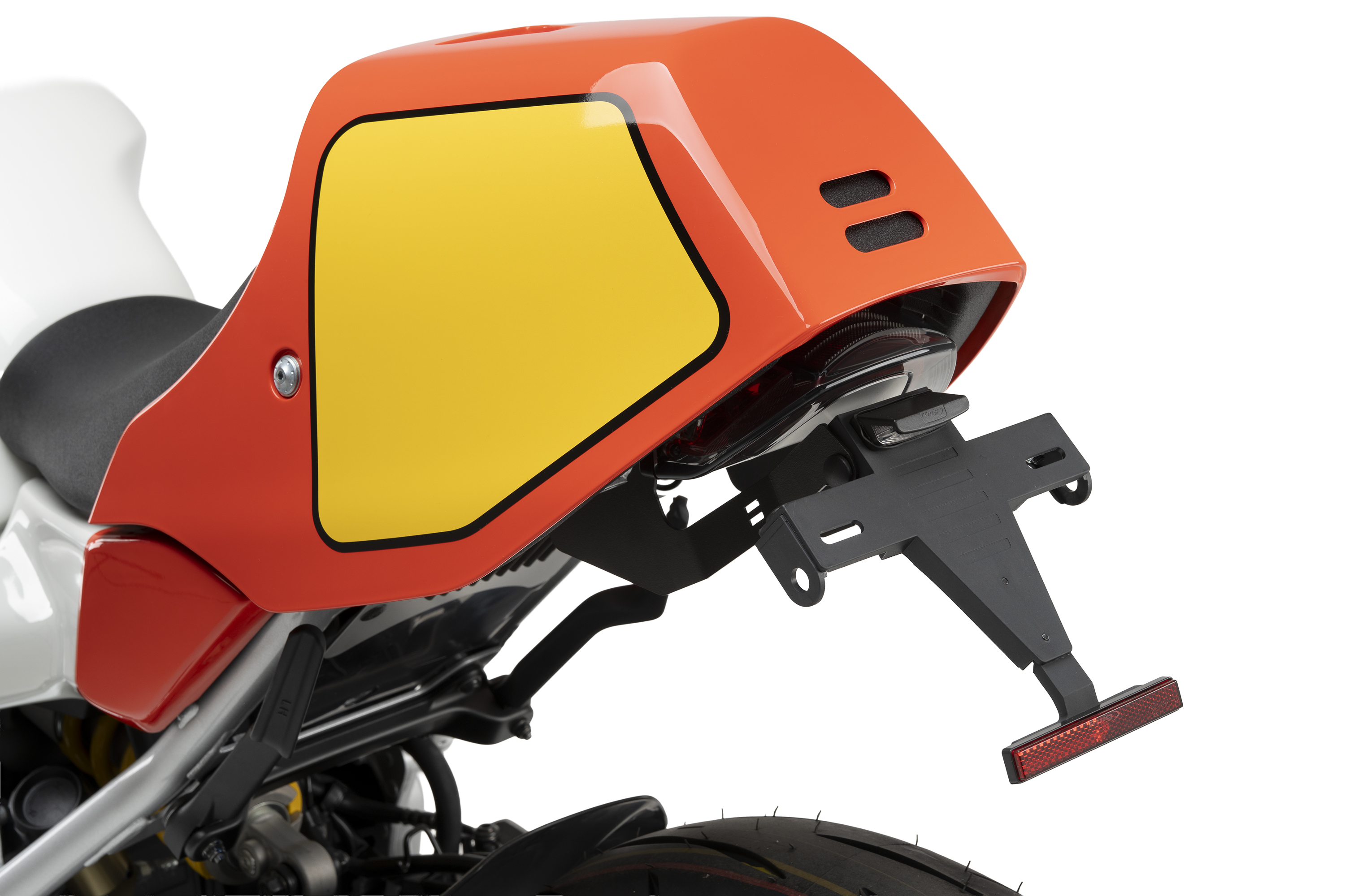 Sostituisci il portatarga originale della tua moto con il supporto portatarga Puig, che, grazie alla sua posizione elevata, dona un aspetto sportivo alla tua motocicletta. Il kit combina parti in acciaio con finitura verniciata in epossidica ed elementi in poliammide, garantendo una significativa riduzione di peso rispetto al supporto originale.
