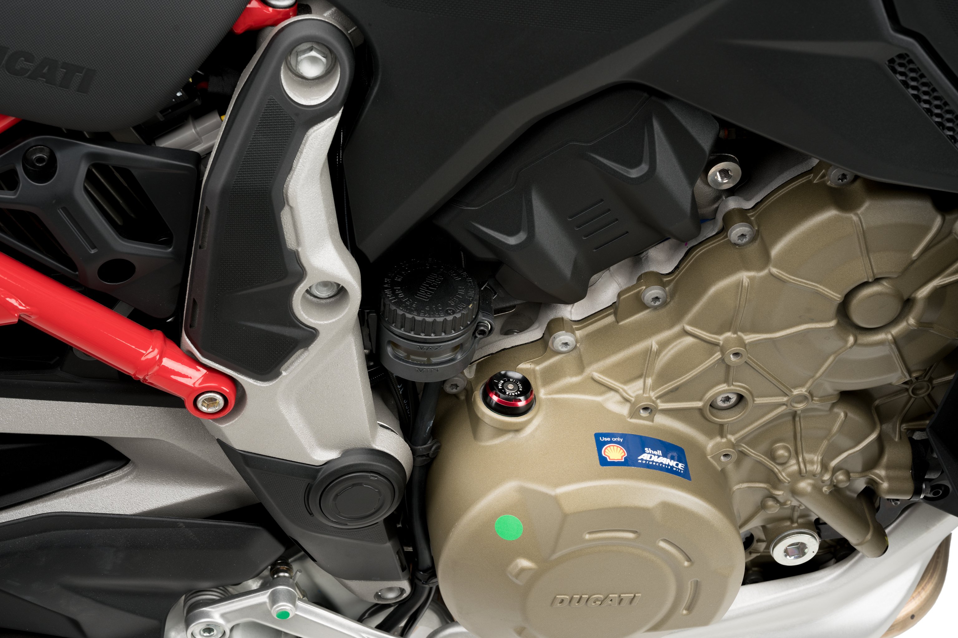 Da una parte originale puramente funzionale a una parte di design che si distingue nel gruppo motore. Al marcato carattere racing, per le ridotte dimensioni e le linee di lavorazione, si unisce l'eleganza di un set anodizzato nero e di un anello colorato che gli permette di integrarsi con il resto della moto.