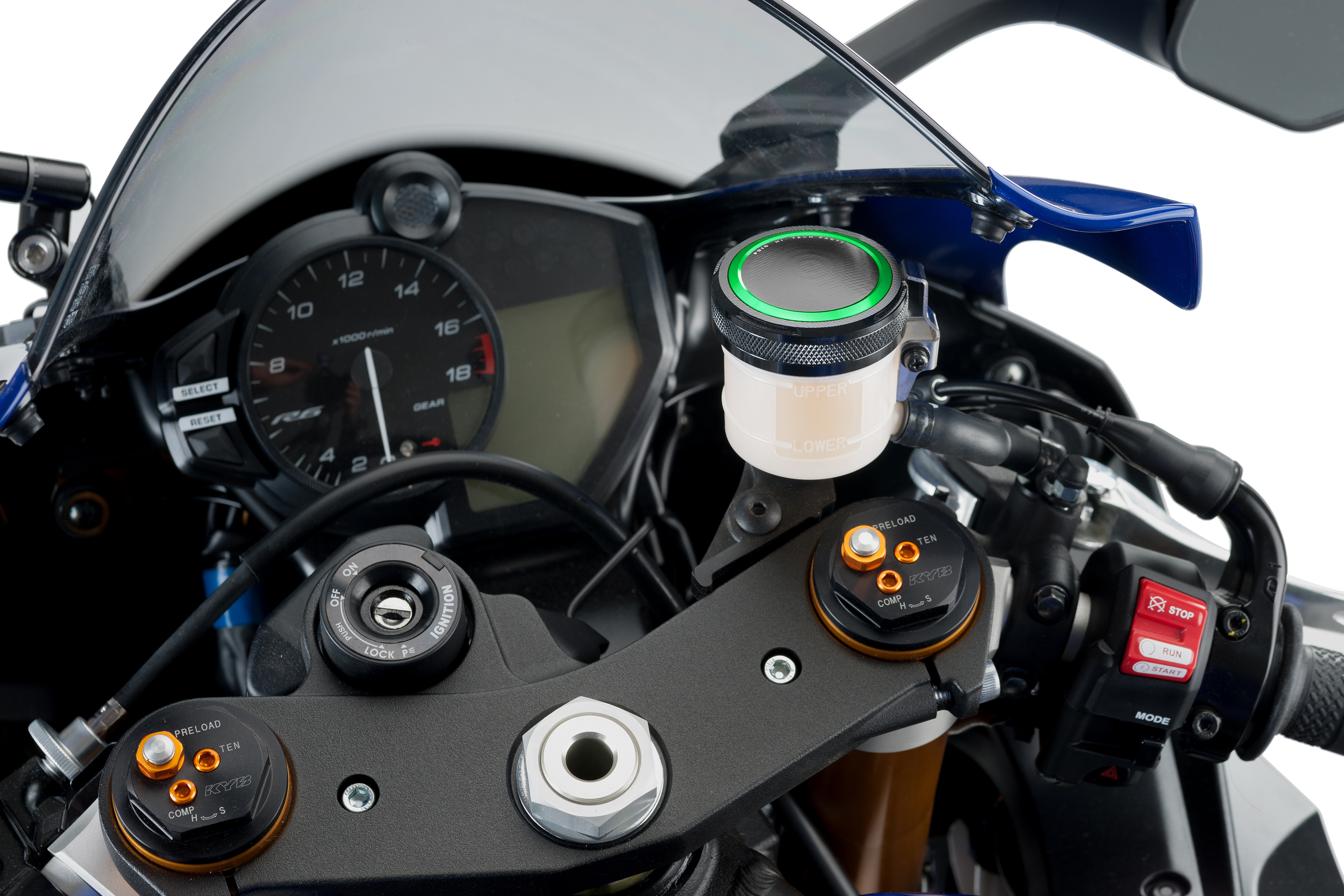 Il produttore catalano presenta il suo nuovo tappo per il serbatoio del liquido dei freni Puig ricavato da un blocco di alluminio, fornendo una maggiore protezione al serbatoio stesso, e anodizzato in diversi colori per personalizzare la moto al massimo. Il tutto sotto l'esclusivo design hi-tech della Puig.