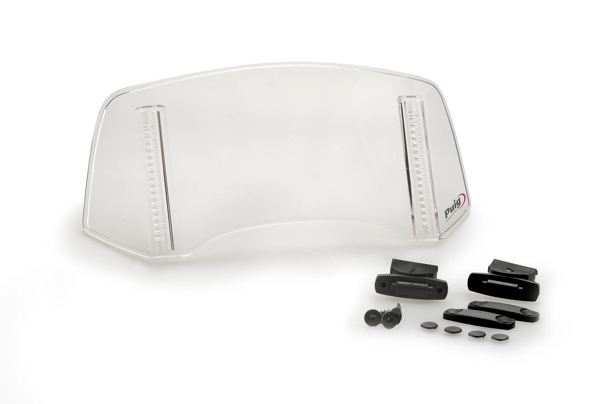 Il suo particolare design e le sue misure (300 mm di larghezza e 130 mm di altezza) sono ottimali per fungere da schermo contro le raffiche di vento, deviandolo da aree sensibili come il casco e il busto del pilota. Inoltre, evita possibili turbolenze e suoni che possono disturbare o distrarre durante la guida. L'utente potrà adattare la visiera fino a 4 posizioni di rotazione, che insieme alle guide che consentono di regolarne l'altezza di 100, diventano infinite posizioni che consentono di adattarla alla propria altezza o preferenze.